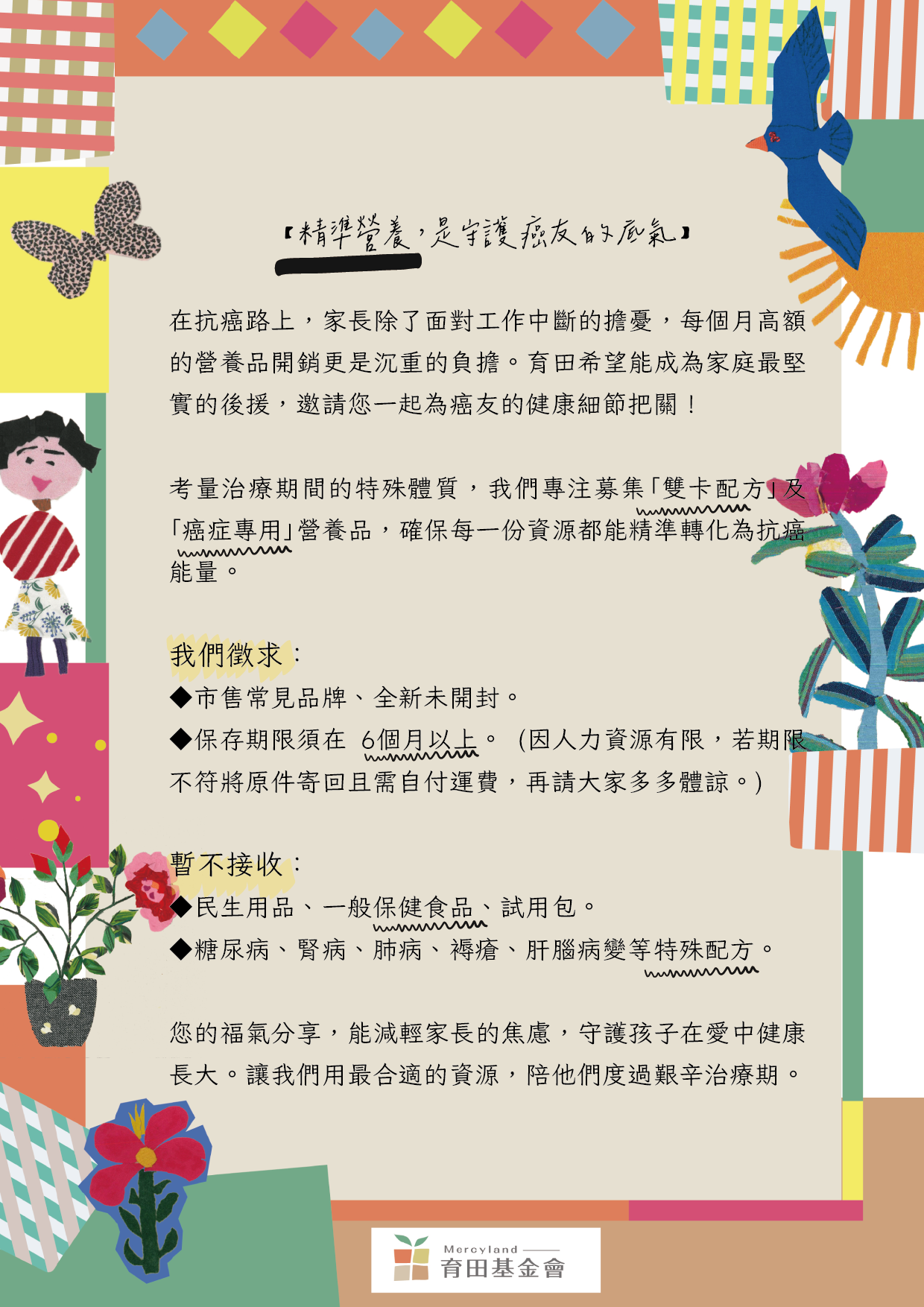 #育田基金會 #實物捐贈 #我幫癌友 #專業後援 #營養補給 #抗癌神隊友