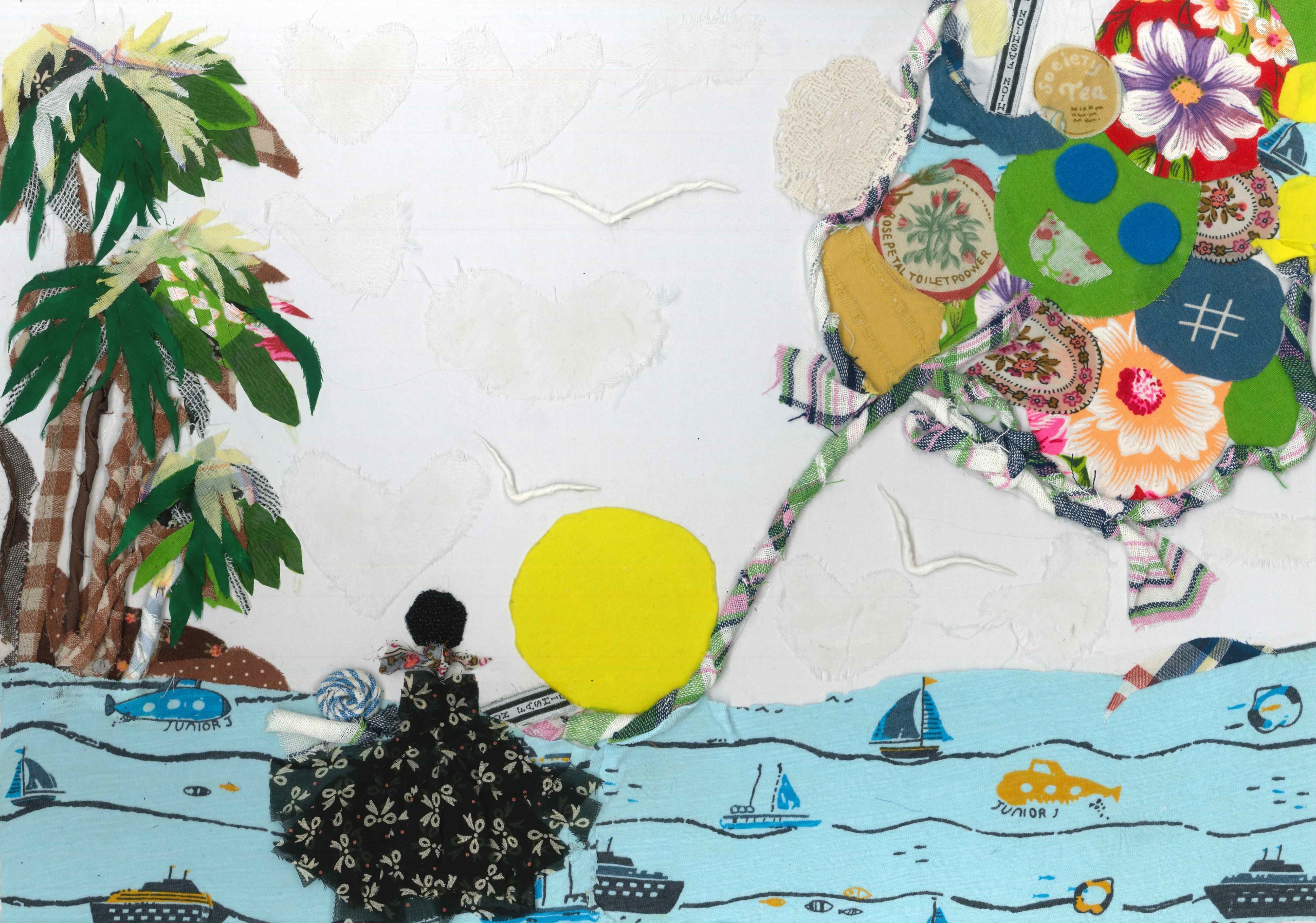 淑妙女士透過拼貼,將病後的沉重層層拆解,轉化為向陽前行的步履。這正是拼貼藝術的真諦——在混亂中整理思緒,將破碎的經歷重組成守護未來的穩定能量。