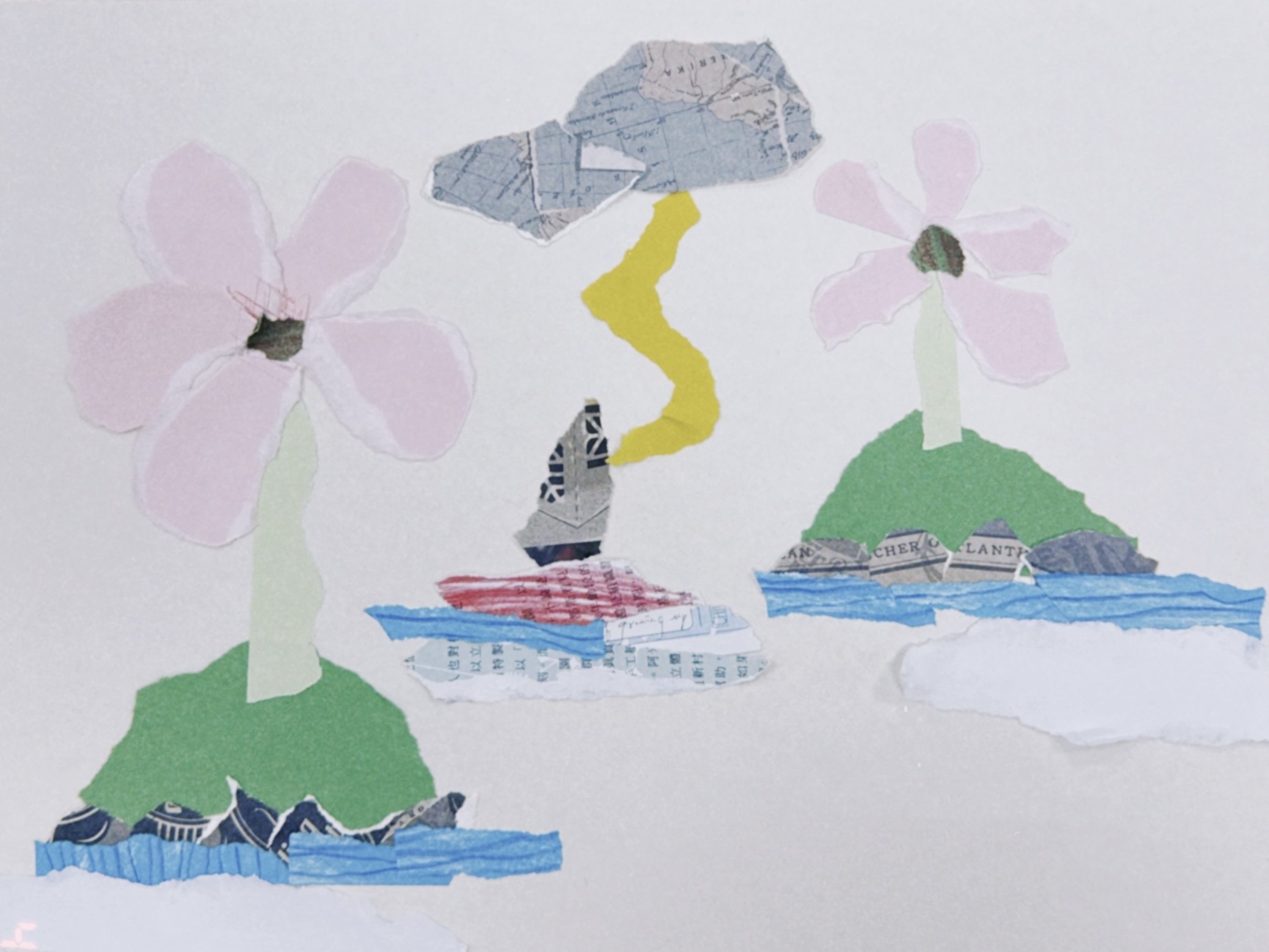 我們常望著對岸,覺得那裡的風景更美、生活更圓滿,卻忽略了為了抵達彼岸,必須穿過狂風暴雨。在這幅畫中,我將兩岸的花貼成了一模一樣,我想說的是:其實現在正努力生存著的你,就與彼岸同樣珍貴且美麗。 ✨