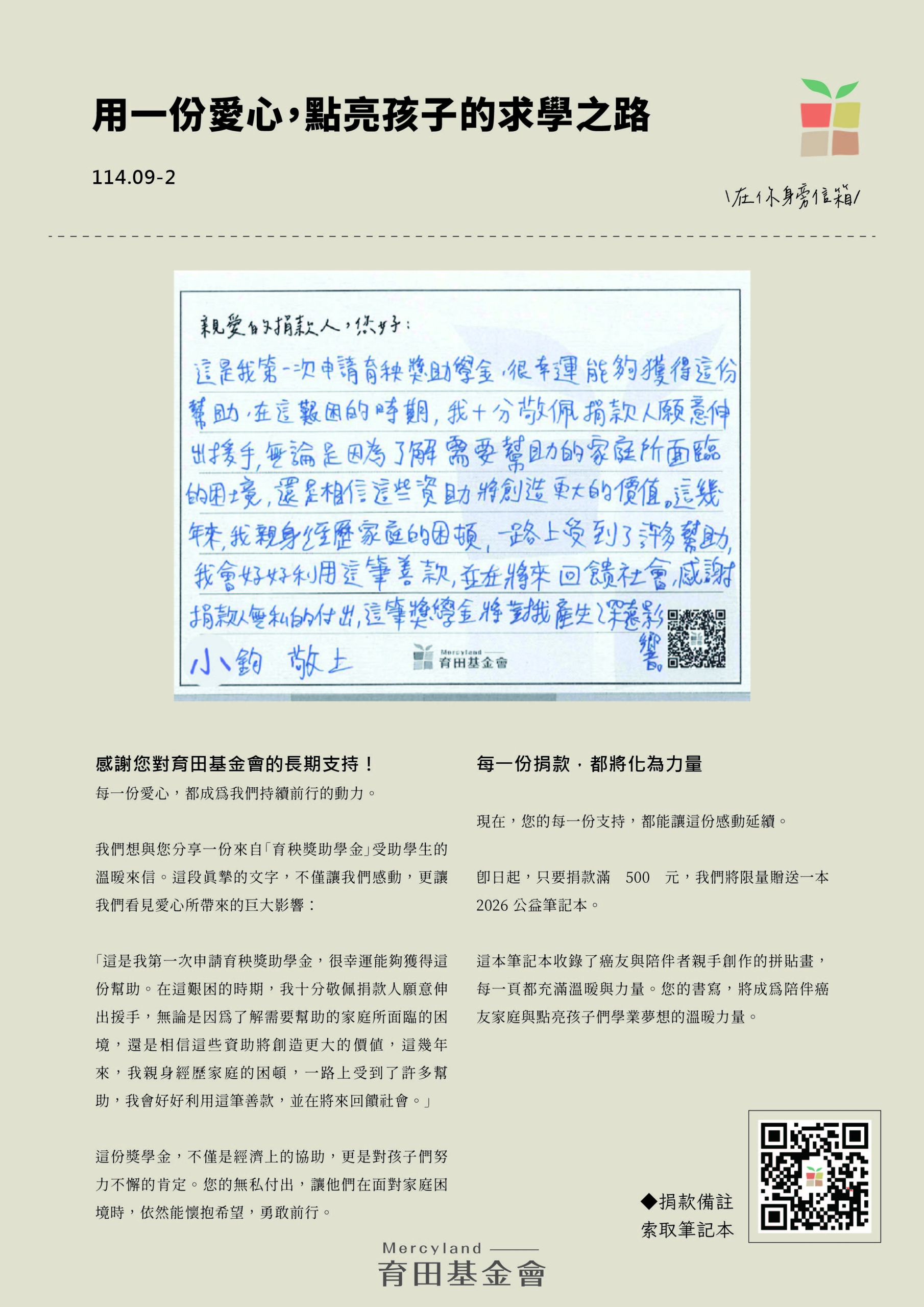 是我們對於每一位捐款人涓滴灌溉的珍惜以及對服務推展的期許